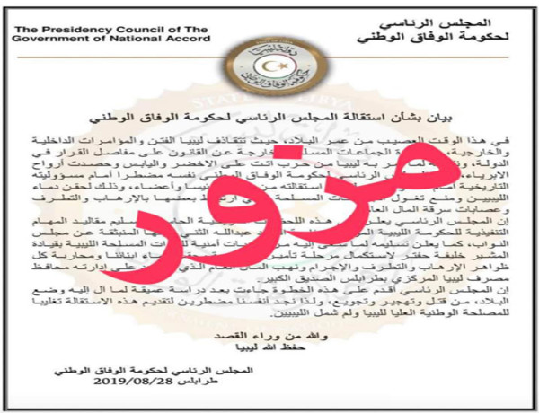 2019/8/28 التأكيد على إختراق حساب حكومة الوفاق الوطني على التويتر وأن مانشر عاري عن الصحة.