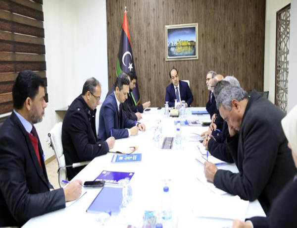 الإجتماع المنعقد بمصرف ليبيا المركزي، بحضور السيد محافظ مصرف ليبيا المركزي، وعدد من السادة مدراء المصارف الليبية ومدراء الإدارات بمصرف ليبيا المركزي
